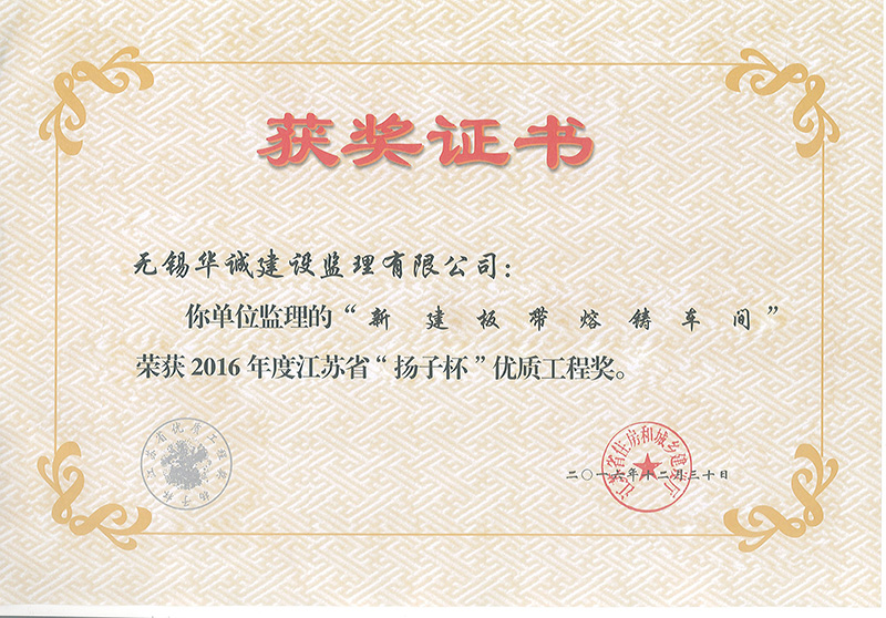 2016年无锡华诚建设监理有限公司获“扬子杯”优质工程奖项目