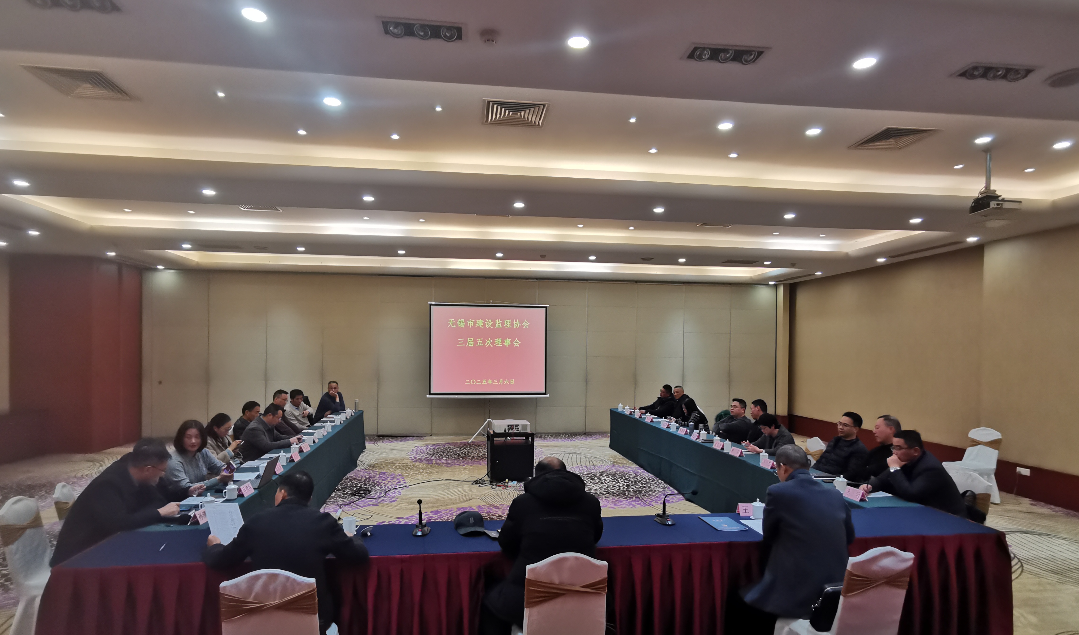 2025年3月6日下午,无锡市建设监理协会三届五次理事会在山明水秀大饭店召开,共有21位理事单位代表参会,监事列席本次会议。会议由秘书长王成武主持。